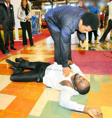 The actor, possessed by the spirit, attempted to run out of the auditorium but was held back with the prophet shouting: “Out! in the name of Jesus. Come out! in the mighty name of Jesus Christ.”